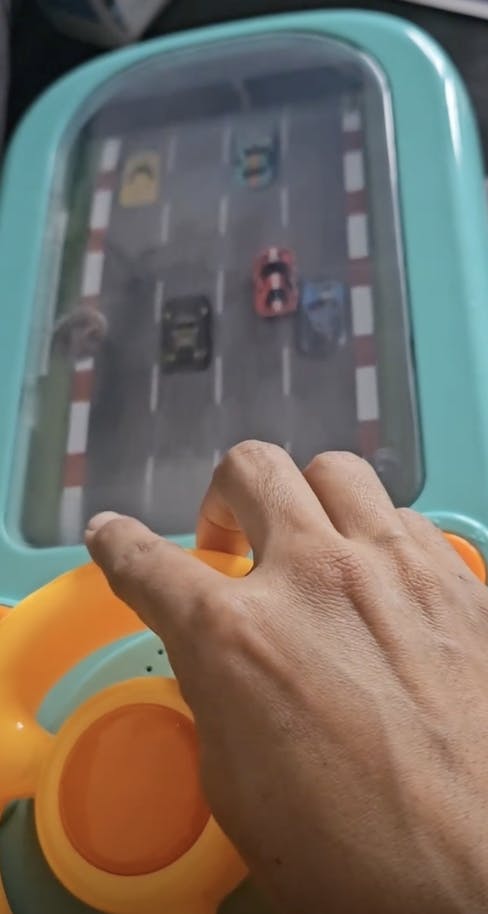 El volante, la palanca y los botones están diseñados para ofrecer una sensación de conducción realista, dentro de lo que es un juguete infantil. Los peques sienten que de verdad “controlan” el camino: giran, frenan, esquivan obstáculos y reaccionan a los desafíos del circuito. No es solo simbólico: la dinámica interactiva hace que realmente se sientan pilotos.