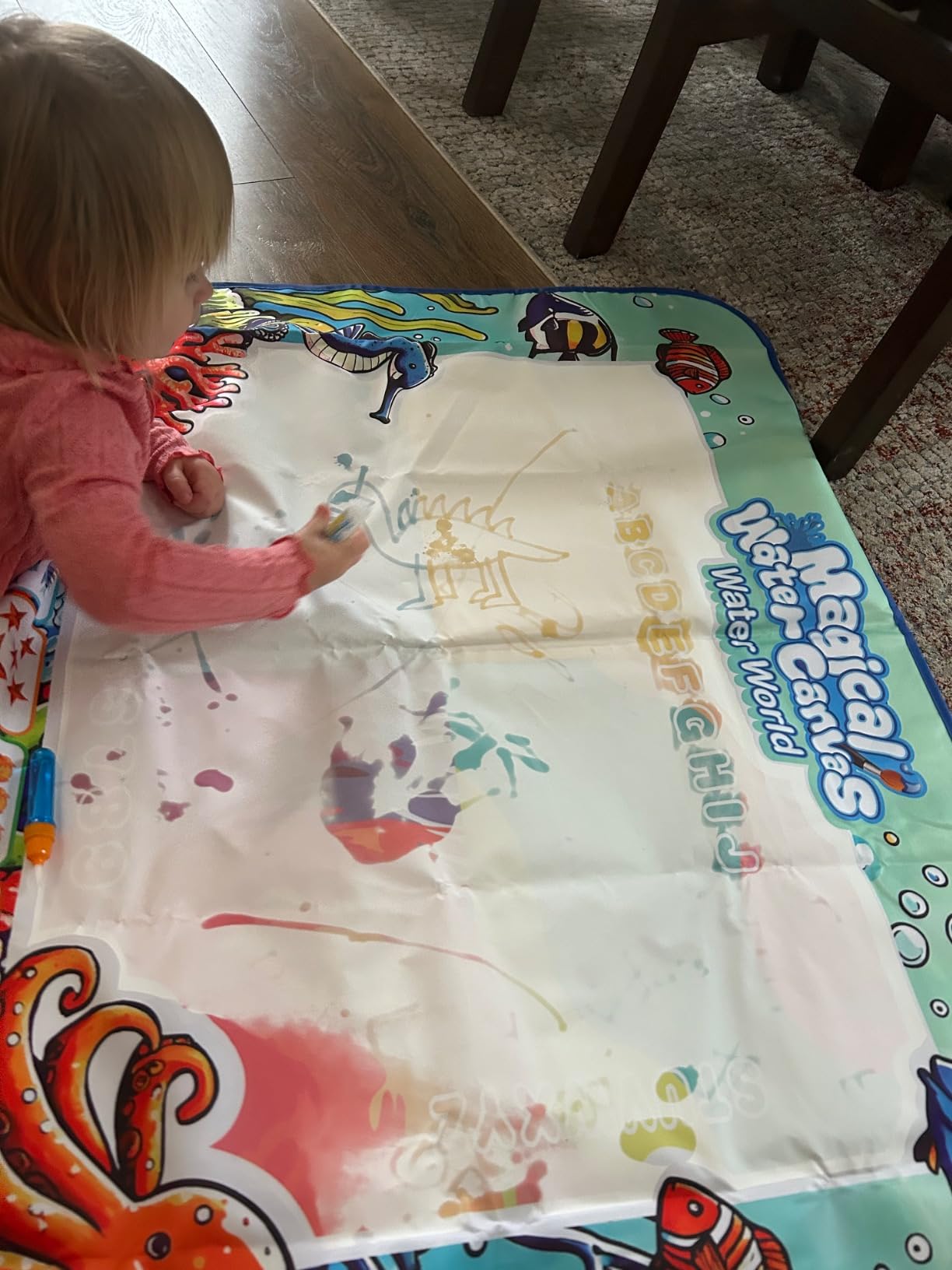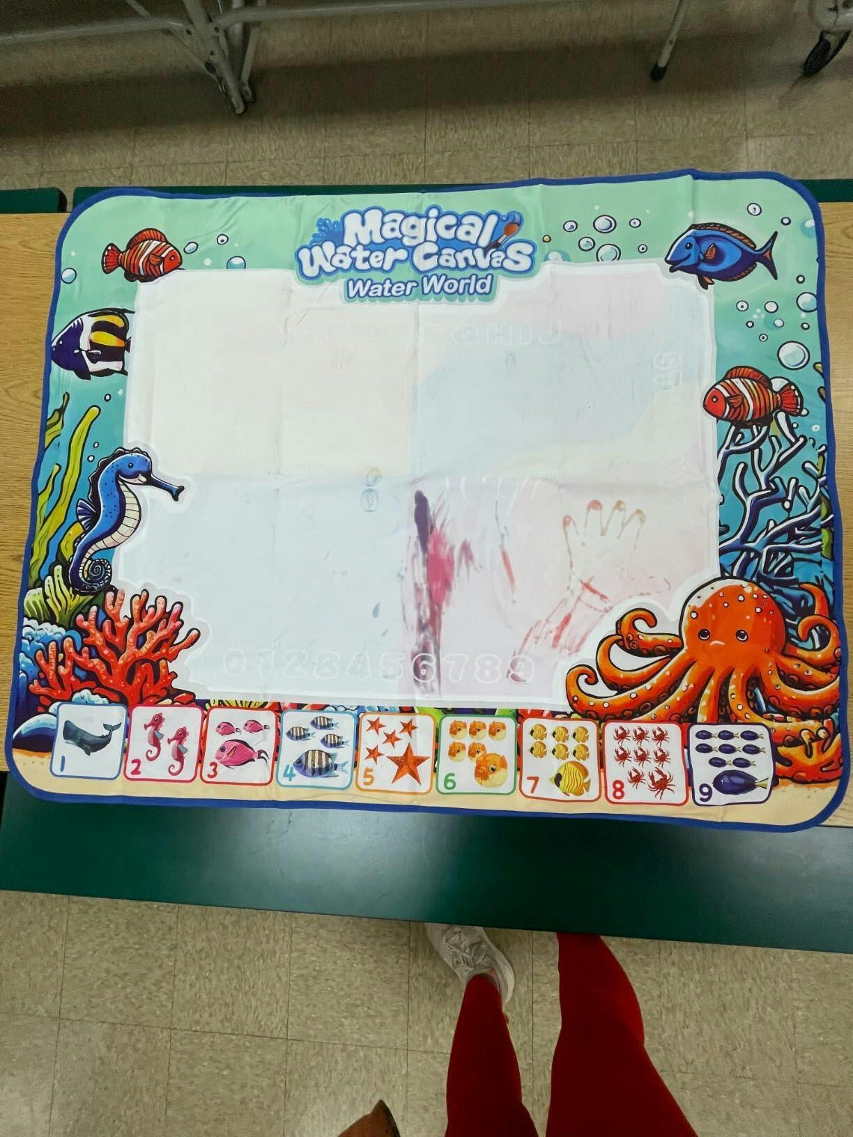 • Alfombra reutilizable de gran tamaño (60*78 cm), diseñada para pintar con agua sin ensuciar.