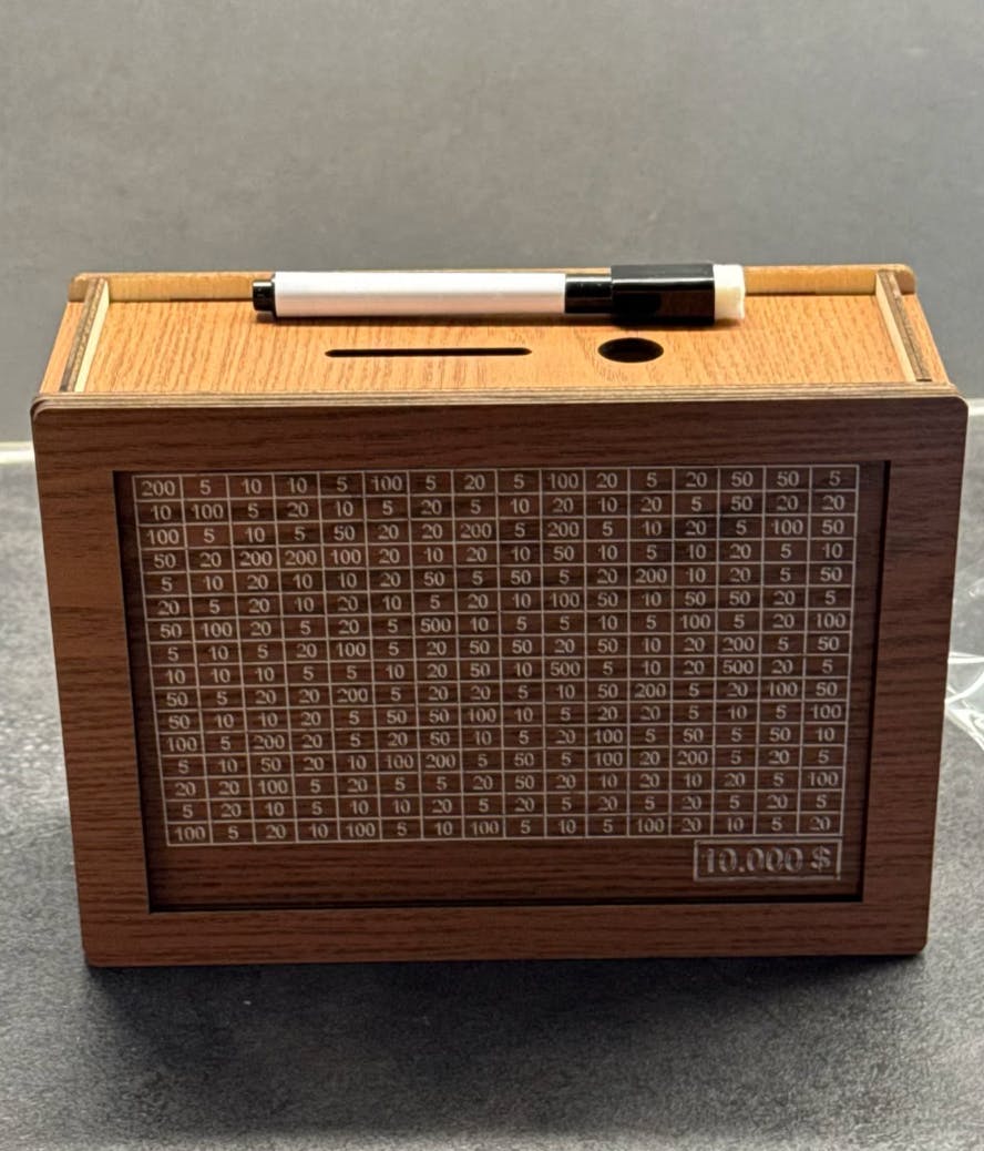 Incluye: 1 hucha Save10k con mostrador + 1 rotulador